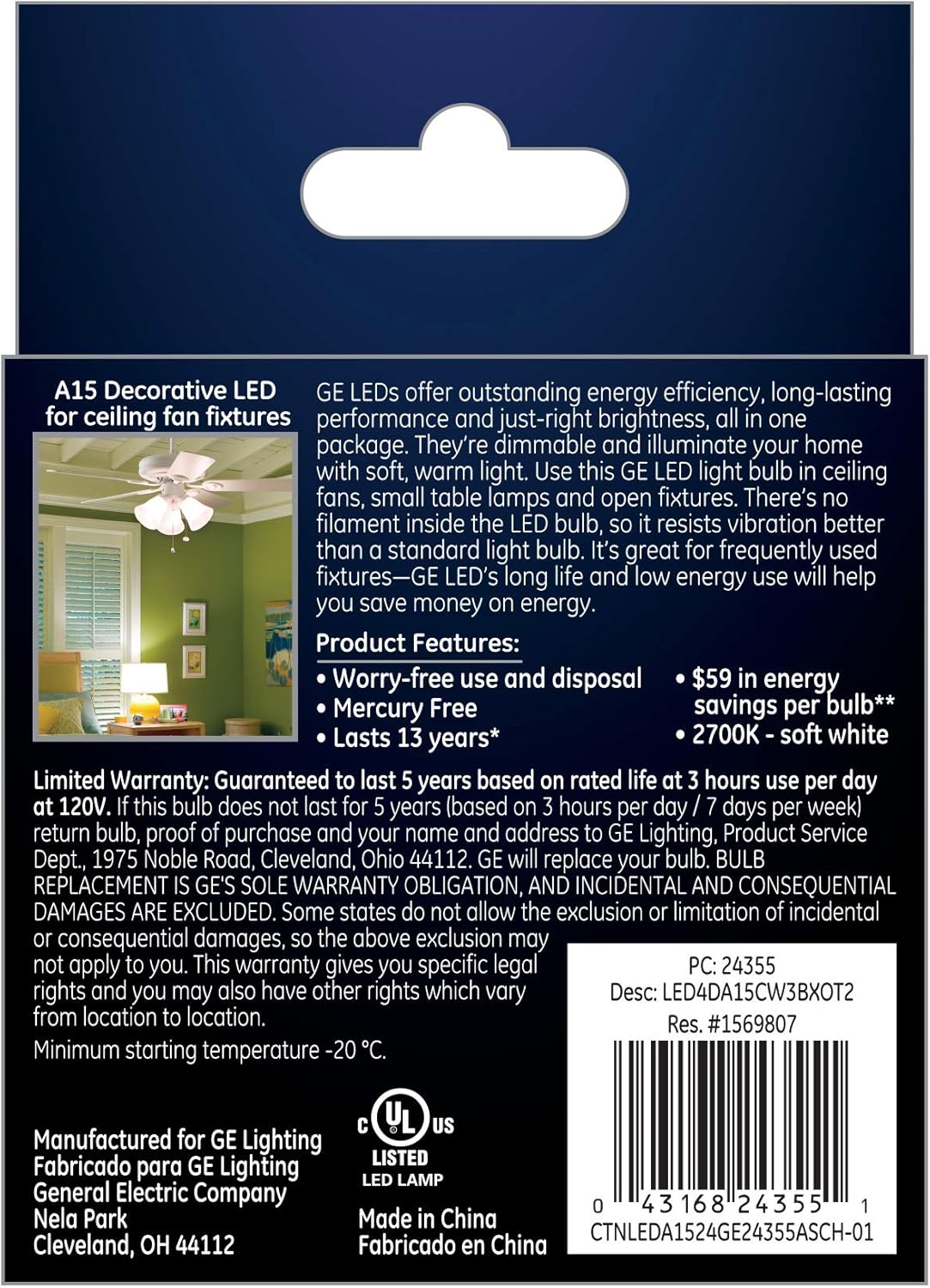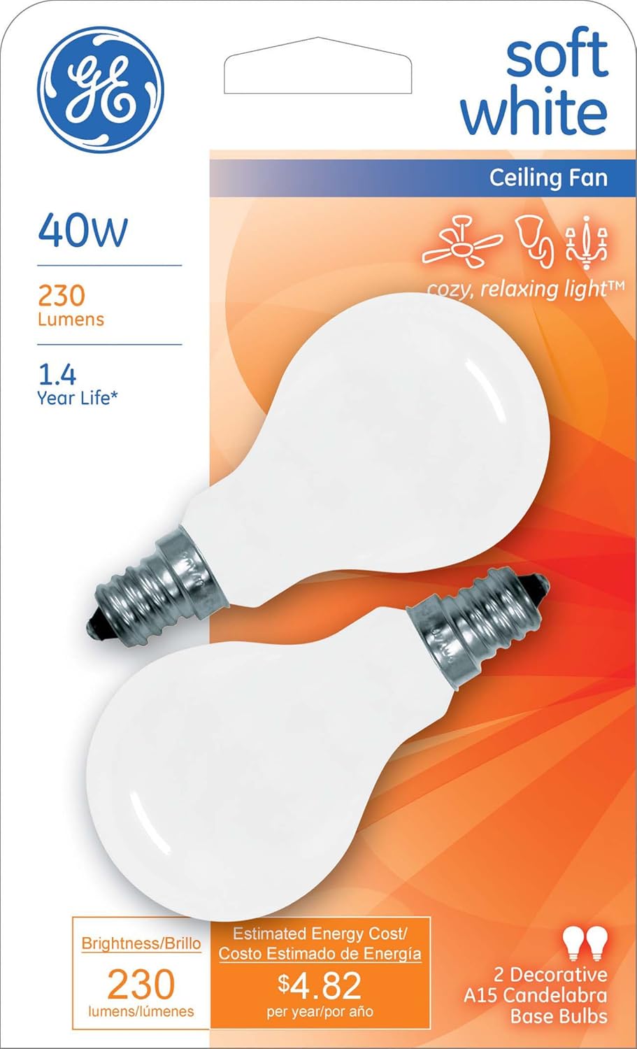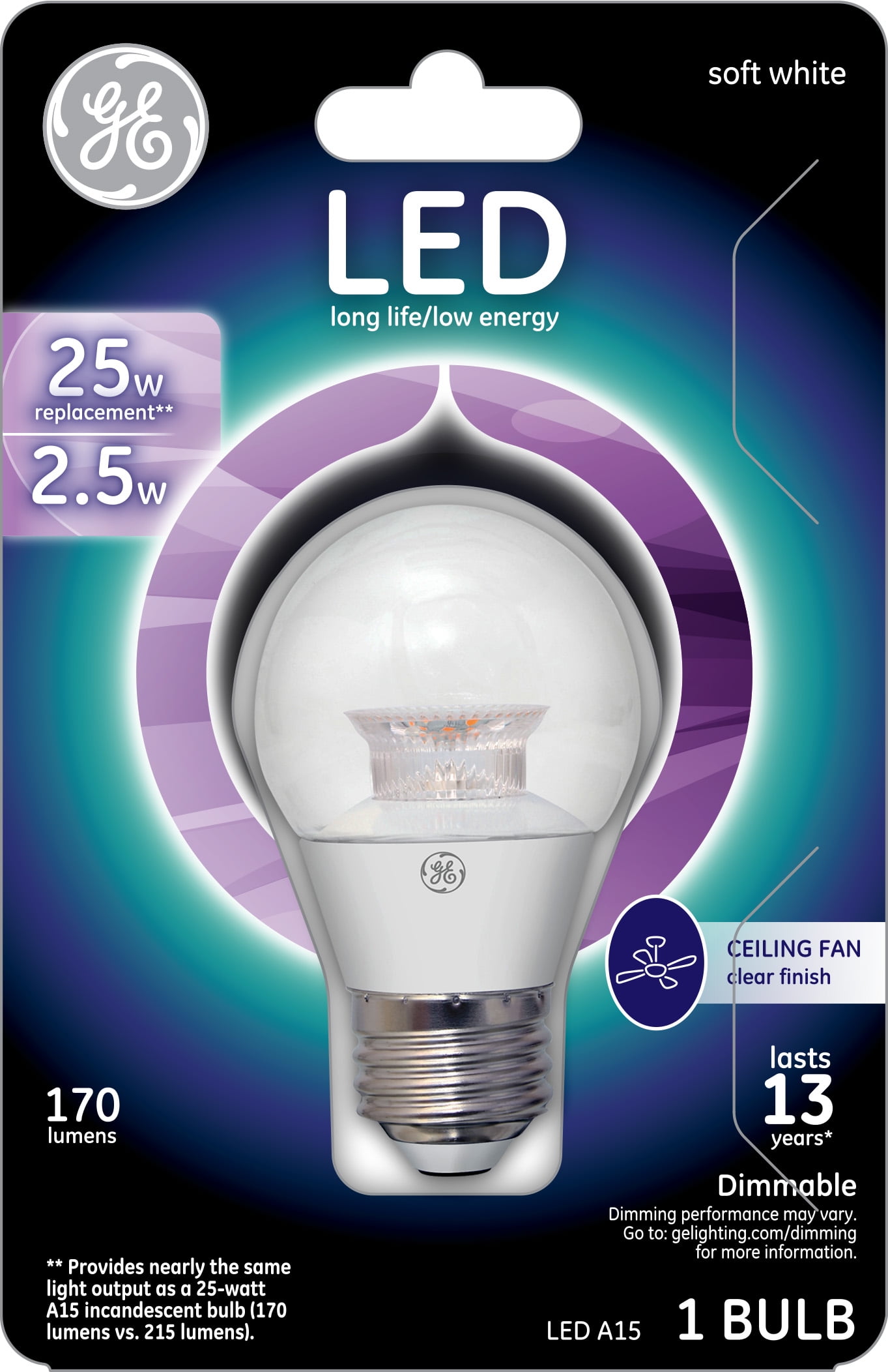 Ge 2.5 Watt Led Light Bulb For Ceiling Fans A15 : Ge Lighting 36969 Clear Finish Light Bulb Refresh Hd Dimmable Led Decorative 2 5 200 Lumen Medium Base Bent Tip 2 Pack Standard 25 Watt Replacement Soft White 2 Led Bulbs - L lohas led lohas led refrigerator light bulb, 40w equivalent 120v a15 led lamp, 5 watt daylight 5000k with e26 medium base, energy saving f.. Ge reveal blunt tip bulb can transform every room in your home from ordinary to extraordinary. You can also choose from. B11f led 40 watt equivalent light bulb 3.5 watts e 26 base 36 bulbs altogether. Incandescent fan light bulb (1). A wide variety of 2.5w led bulb light options are available to you, such as lighting and circuitry design, project installation, and auto cad layout.